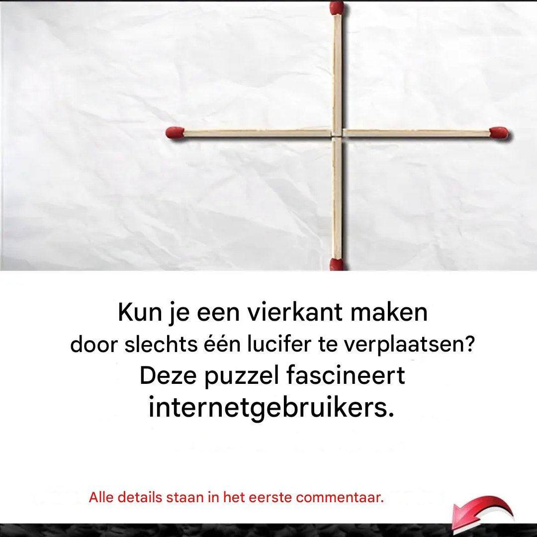 Daag jezelf uit met deze puzzel: verander een kruis in een vierkant met één luciferbeweging.