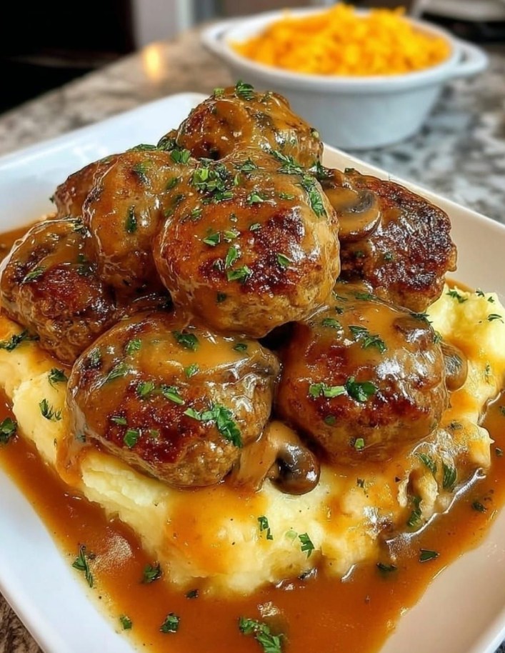 Salisbury Steak Gehaktballetjes zijn een heerlijke variant op de klassieke Salisbury steak. Ze bieden dezelfde rijke smaken in een makkelijker te bereiden versie. Perfect voor een familiediner of een stevig voorgerecht, deze dumplings zijn sappig, smaakvol en makkelijk te maken. Zo maak je ze met duidelijke instructies: Makkelijke bakrecepten.
