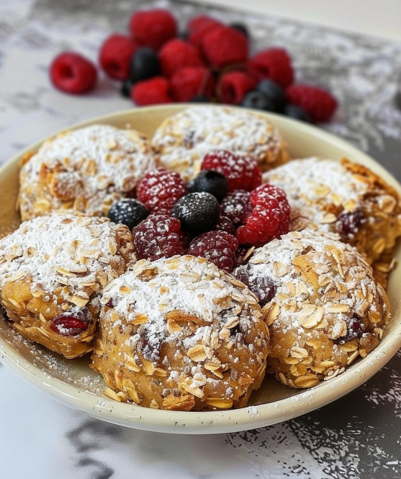2. In een grote kom mengt u havermout, veenbessen, gehakte walnoten, blokjes banaan, appelblokjes en havermout.