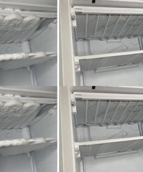 Om dit te doen, zet eerst je apparaat uit. Voeg daarna 2 eetlepels zout toe aan een kom heet water, giet het mengsel in een spuitfles nadat het ingrediënt volledig in het water is opgelost, en spuit daarna de binnenkant van je apparaat in. Na een paar minuten zou het ijs moeten smelten. Verwijder tegelijkertijd de rijplaag met een houten stok.