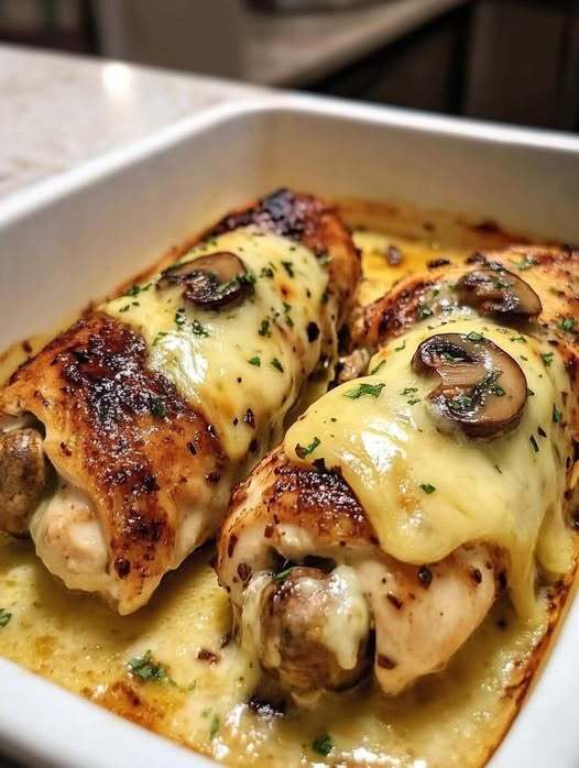 Om du längtar efter en rätt som är fyllig, tröstande och visuellt imponerande, levererar denna fyllda kyckling i varje tugga. Saftiga kycklingbröst fylls med en smakrik blandning av vitlök, smör och svamp, och avslutas sedan med smält mozzarella för en gyllenbrun, seg finish. Den är enkel att tillaga, kan anpassas i oändlighet och garanterat imponerar – oavsett om du lagar mat till familjen eller bjuder vänner.